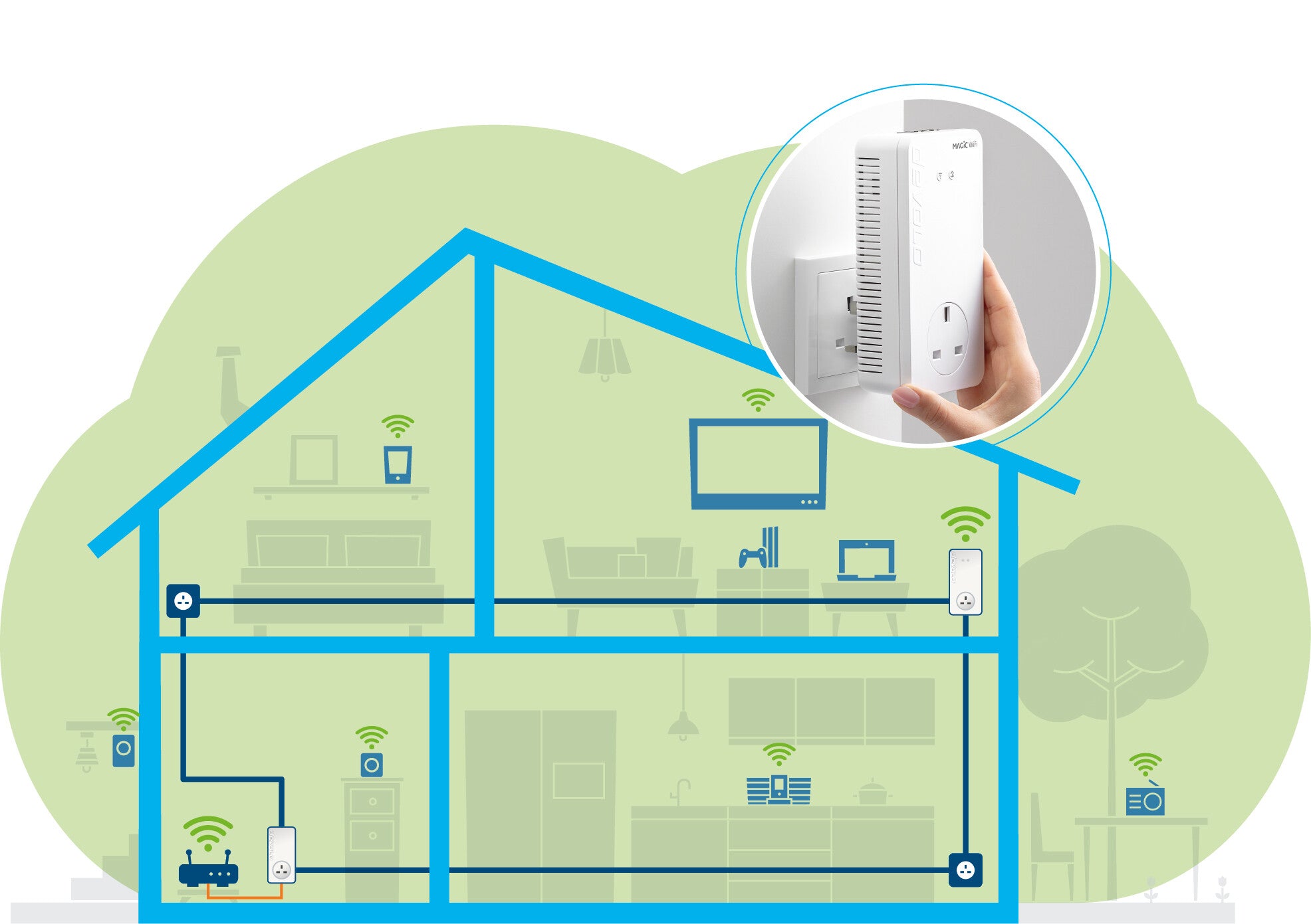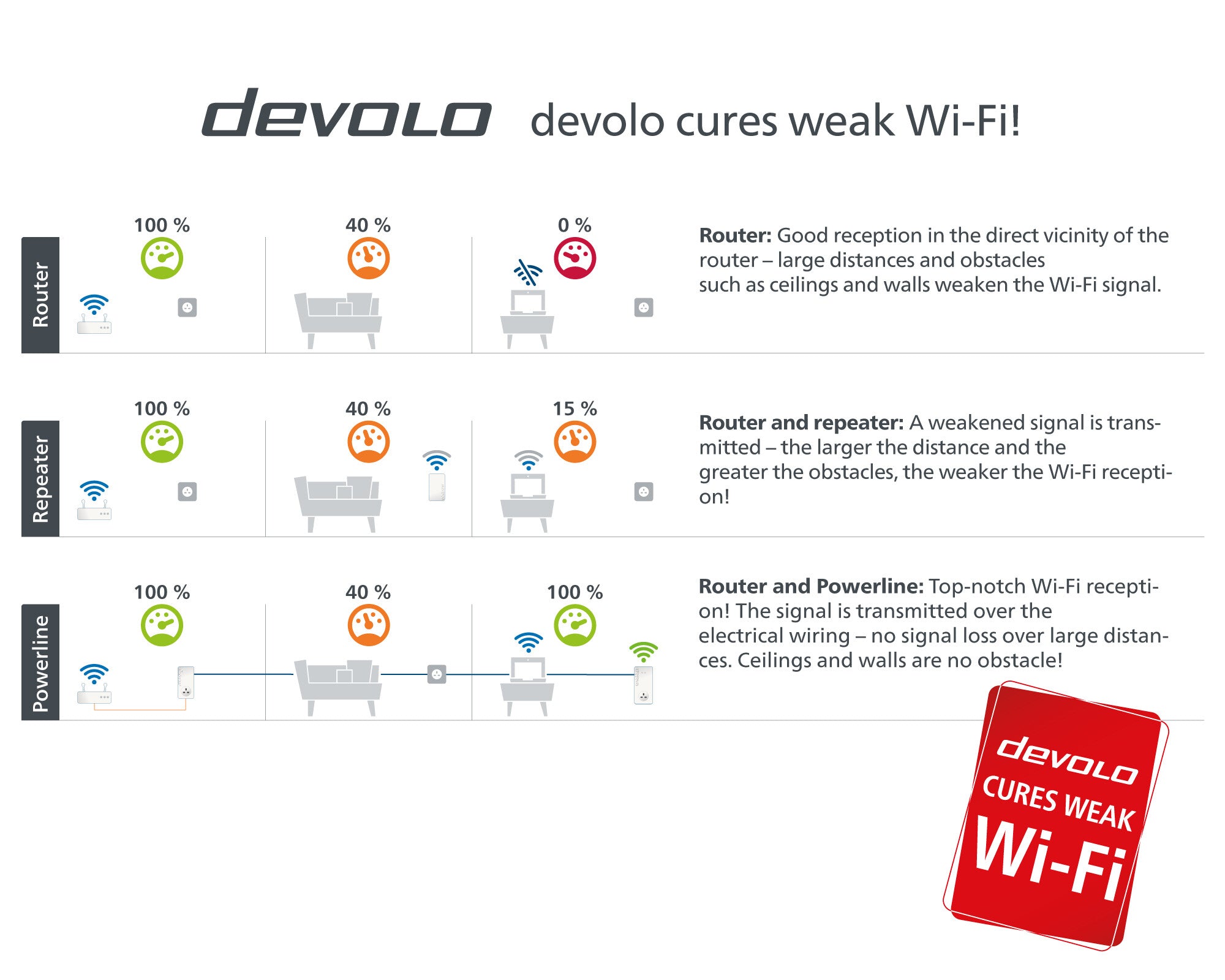 Bring the internet to every corner of your home. The magical WiFi amplifier from devolo ensures that you can surf and stream as much as you want, from your basement workshop to your garden house. In multiple rooms at once, with fantastic stability, and at a fabulous 1200 Mbps.