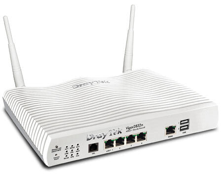 The Vigor 2832 series (including the Vigor 2832n) is our new router/firewall for ADSL lines. Alternative WAN ports can insead provide connectivity to Ethenet feeds, secondary xDSL modems or a 3G/4G cellular service using a supported USB adaptor. This latest router series includes support for professional features such as VLAN tagging, Gigabit Ethernet built-in WiFi ('n' models).