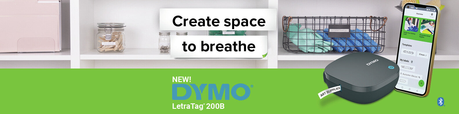 With the portable DYMO® LetraTag® 200 Bluetooth, you can print a wide range of label types and colors directly from your smartphone or tablet. Homes and home offices are easily organized with the help of the intuitive LetraTag® Connect mobile app. LetraTag® 200B slips neatly into your bag, and is ready to go in seconds, thanks to its automatic Bluetooth connection. The 200B works with authentic LetraTag® labels, with an external cassette made from 100% recycled materials. The paper labels are also FSC®-certified. Ideal for all of your labeling needs, from kitchen, bathroom, kids room, and student dorm room storage, to home office, and craft organization - you can even keep track of kids clothing and backpacks with LetraTag® iron-on fabric labels.