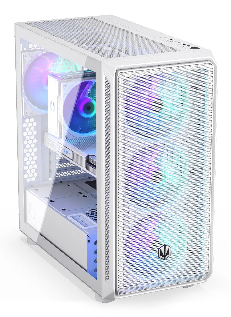 The Arx 700 White ARGB is a white chassis compatible with ATX and smaller motherboards. Built to house top-tier components, it supports radiators up to 360 mm and accommodates up to 8 fans — including 4 pre-installed Stratus 140 White PWM ARGB units that deliver whisper-quiet operation and powerful airflow.