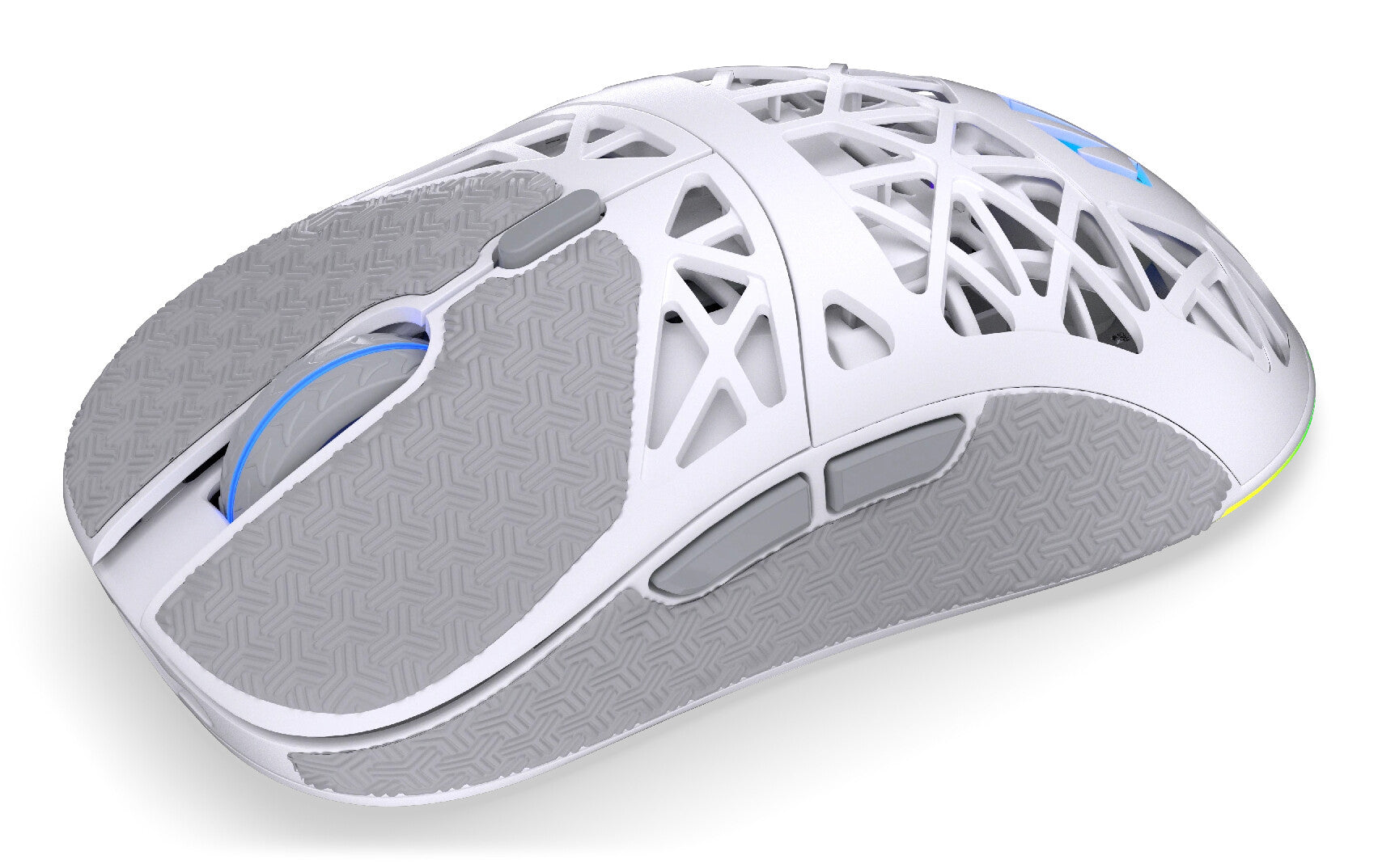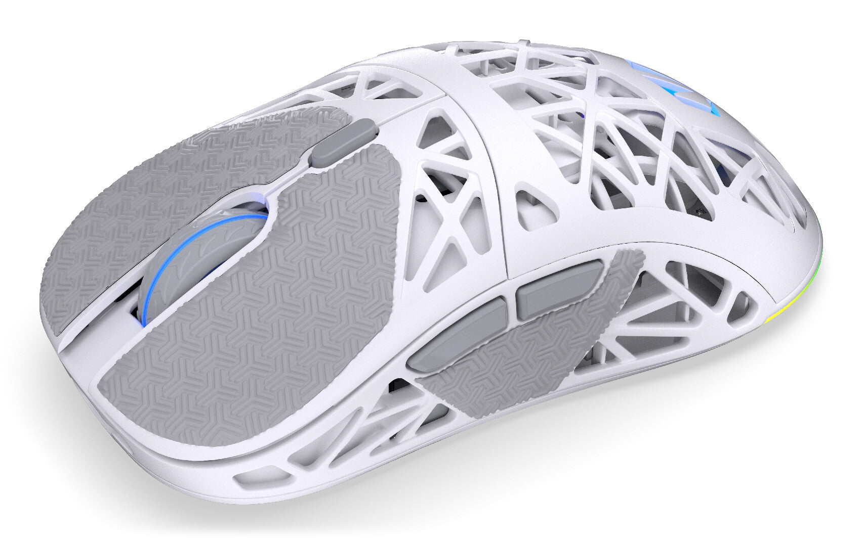 The ultra-light and perfectly balanced body equipped with PTFE feet and the self-adhesive grip tape, matching the onyx-white housing is our in-house design. Its breathable surface provides not only great airflow beneath your hand but also a staggering advantage over your foes in games and esports competitions. To put it simply – your moves will be fast, unimpeded and fully controlled.
