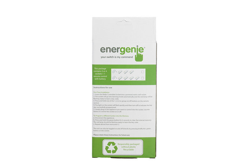 Contains 3 radio controlled sockets with one remote control. All three sockets can be controlled independently with the remote control.
