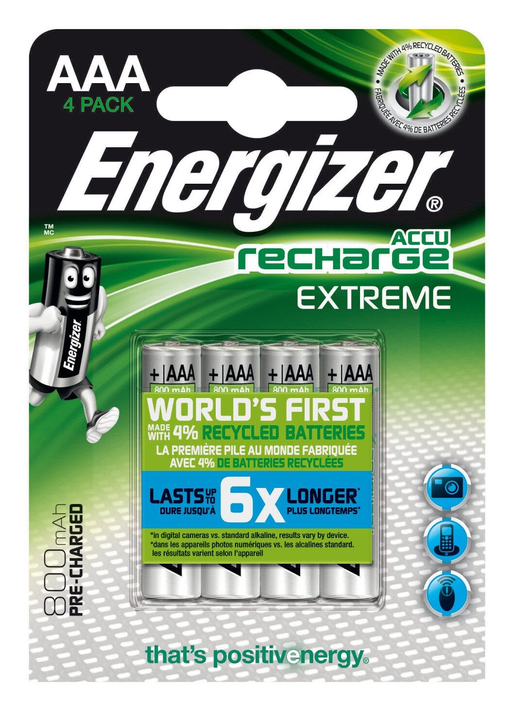 Energizer Rechargeable Batteries. Ideal for digital devices such as digital cameras PDAs MP3 players portable TV and DVD players. Can be used with the 15 minute charger at the expense of a couple of minutes extra. 1.2v Size: AAA (LR03). Capacity: 1000 mAh. Packed 4.