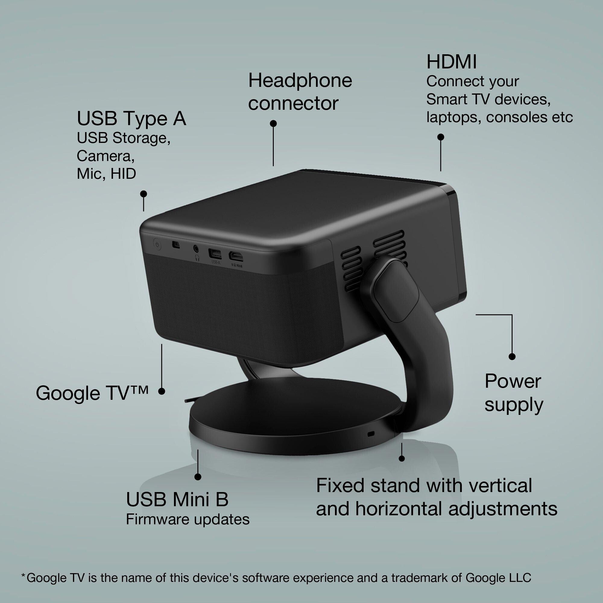 Everything you stream. All on one screen. Access 400,000+* movies and TV episodes, all in one place. Google TV™ brings your favourite content from across your apps and subscriptions and organizes them just for you. Ask Google Assistant to find movies, stream apps, play music and control your projector - all with your voice*. Easily cast movies, shows, photos, and more from your phone or tablet, right to your projector with Google Cast*. The built-in 5W Bluetooth speakers can be used with or without a visual display.