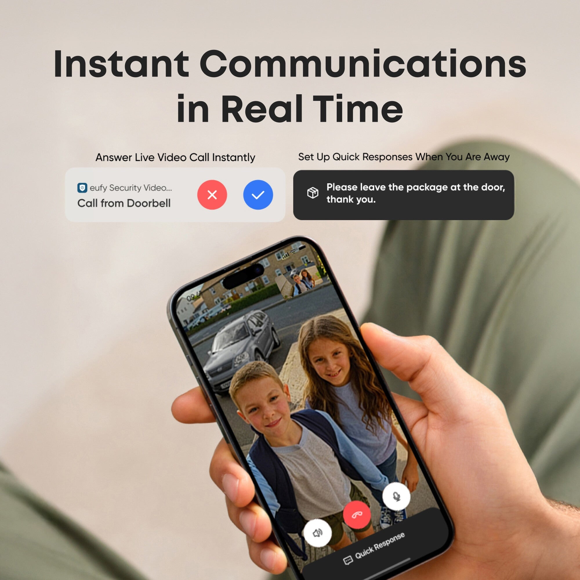 The eufy C31 Video Doorbell delivers 2K resolution and a 4:3 aspect ratio for a complete, detailed view of your doorstep. When someone rings your doorbell, you receive a eufy app notification with a live preview, that you can click to take you to a live video call.