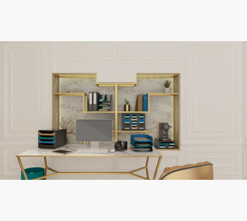 The Neo Deco range, chic and trendy, will allow your office accessories to take on their art deco clothes. With mixed and sober colours, you can also, beyond the classic black or blue, add a touch of velvet or gold if you wish to your workspace.