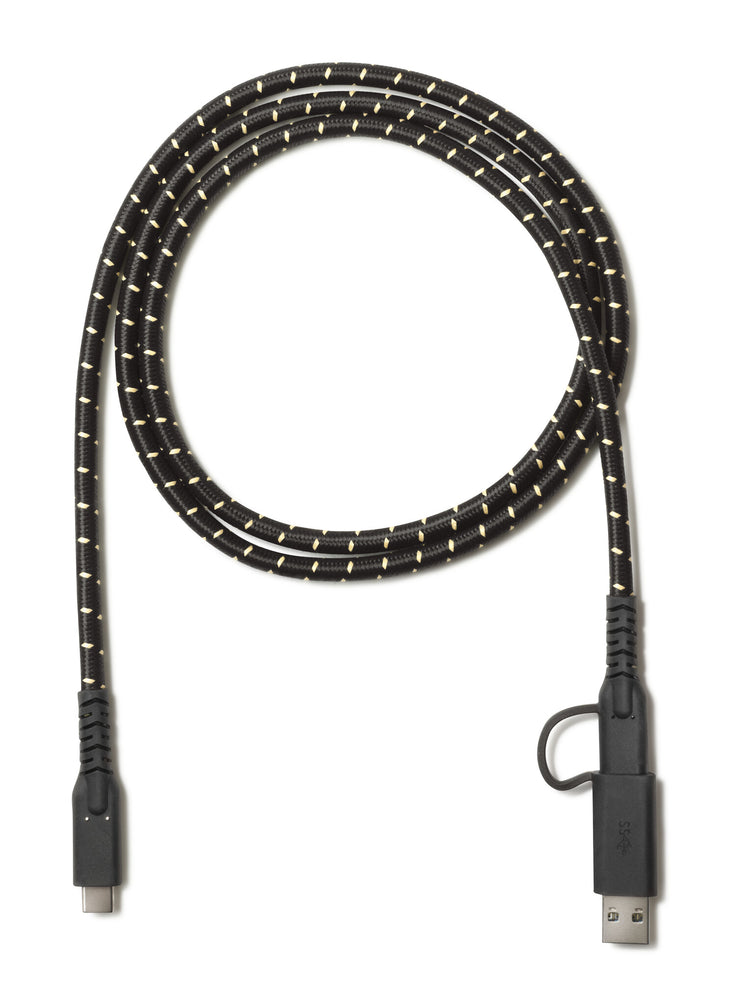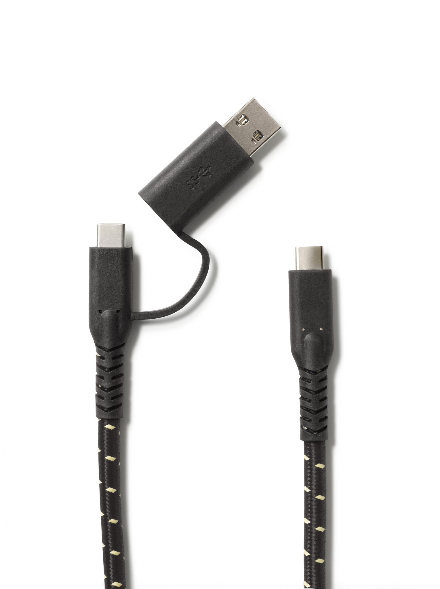 This lifetime-lasting, multi-purpose USB-C 3.2 cable is reinforced with braided kevlar and nylon for exceptional durability and is designed to withstand the toughest industrial-grade stress tests (You can twist it over 50.000 times and it will keep on going). The strain relief is made from bio TPU and there’s a handy velcro-organizer attached. The cable has futureproof C-to-C connectors and comes with the flexibility of a USB-C to USB-A adapter. It gives you the latest performance of supporting 3A and transfer speeds up to 10GBps, for example between your laptop and a portable hard drive. Never worry about charging cables again and cut down on e-waste with the cable that’s designed for true longevity.