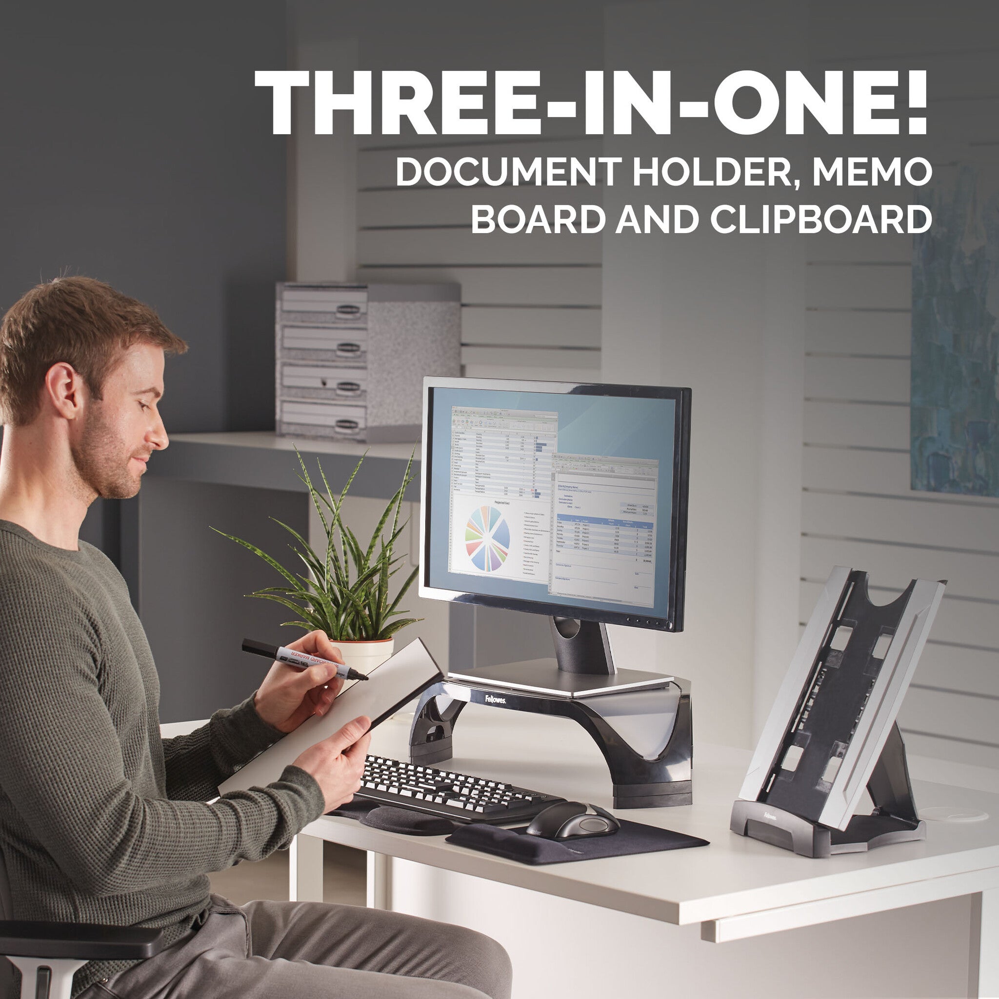 - Three-In-One Copyholder – document holder, memo board and clipboard