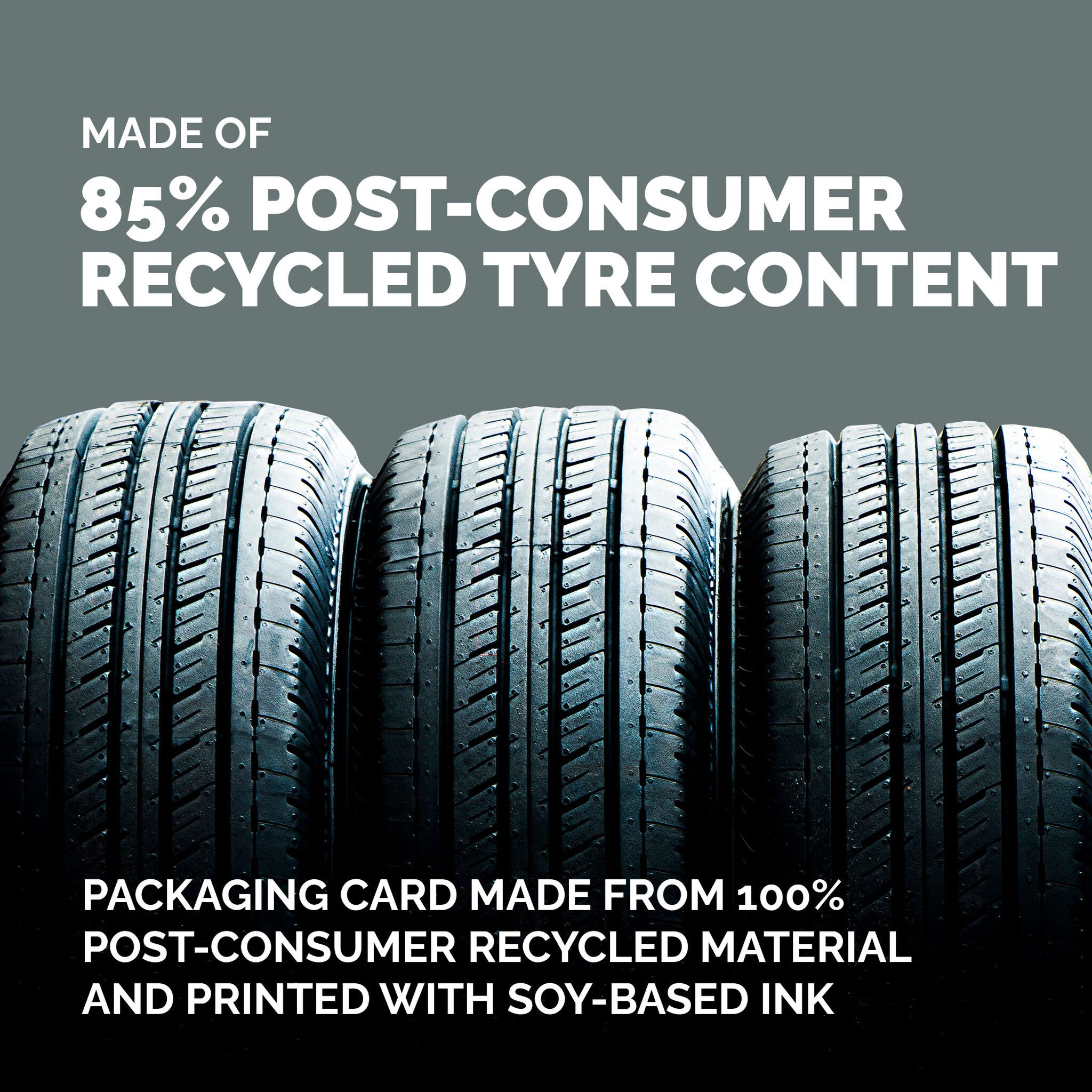 • Packaging card made from 100% post-consumer recycled material and printed with soy-based ink​