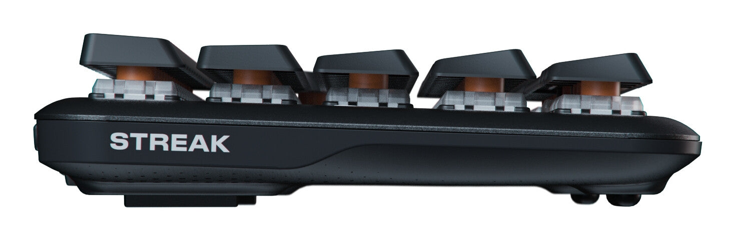 The STREAK65 LP is the fastest gaming keyboard with all the essential keys, while giving you ample room to swing your mouse. Now with ultra-durable doubleshot PBT keycaps, sound dampening foam, and a coiled cable.