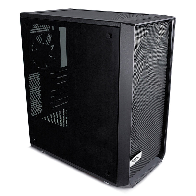 Meshify strikes an aggressive pose in the Fractal Design lineup with unparalleled cooling performance and a defiant new look. Like black diamond facets, the angular asymmetry of the Meshify C carves a space uniquely its own as a new force in high-airflow design. Tempered glass with a distinctive tint completes the stealth-inspired black-on-black aesthetic with exceptional style.