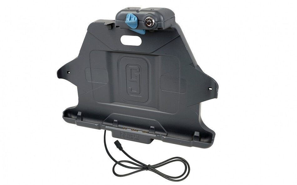 The Samsung Galaxy Tab Active PRO docking station features dual powered USBs. Each USB port will deliver 1.5A of power with an integrated cable restraint system. The docking station is compact, has a keyed lock, and docking/release is a simple, one-handed operation.