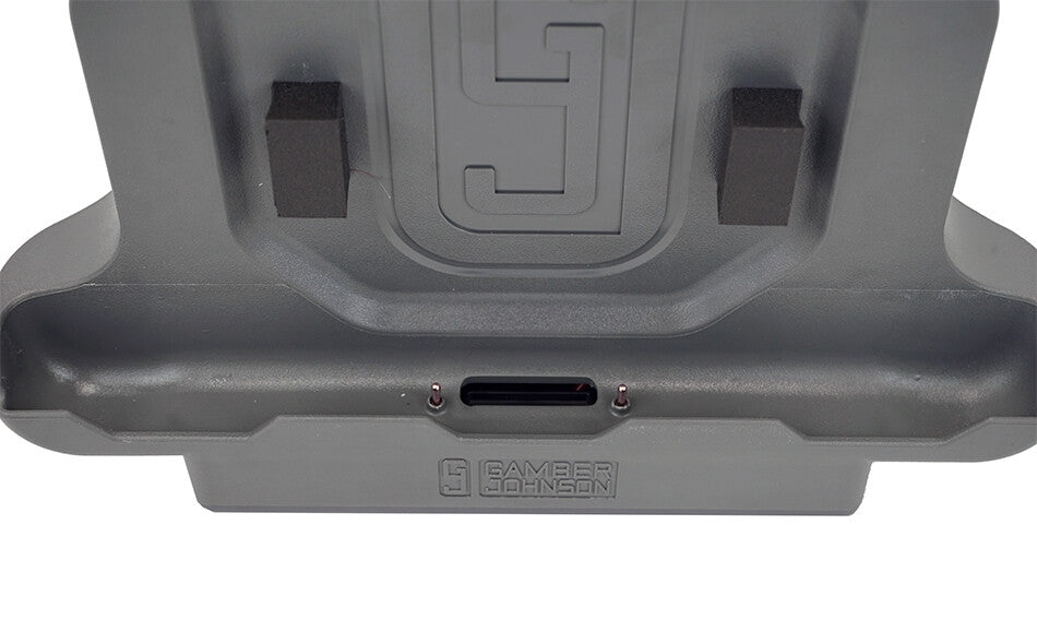 Gamber-Johnson's Zebra ET51/56 Tablet Charging Cradle will keep your ET51/56 computer charged all day long. The front-facing release latch button makes one-handed cradle/release very easy and this cradle will attach to most Gamber-Johnson motion attachments with the VESA 75mm mounting pattern.