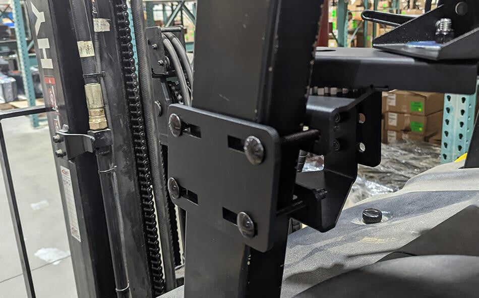 Mount any device securely to the forklift overhead guard legs. Gamber-Johnson Universal Mount attaches to all popular forklift guard legs. The locking swing arm keeps your devices positioned where you want them and the one-handed operation allows for easy adjustability