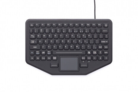 The SkinnyBoard™ SB-87-TP-M is one of iKey’s thinnest keyboards to date. Its sealed, streamlined case and silicone rubber keys meet IP65 standards, making it fully resistant to spills, cleaning procedures and the elements. Built for convenience and versatility in mobile computing applications, the SB-87-TP-M features an integrated touchpad, eliminating the need for an external pointing device. In addition, its red LED backlighting is ideal for nighttime or ambient-light use. An integrated VESA mounting pattern makes it ideal for in-vehicle mounting.