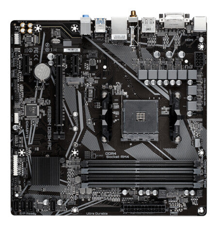 GIGABYTE A520M DS3H AC Motherboard - AMD Ryzen 5000 Series CPUs, 5+3 Phases VRM, up to 4733MHz DDR5 (OC), 1xPCIe 3.0 M.2, GbE LAN, WIFI 5, USB 3.2 Gen 1