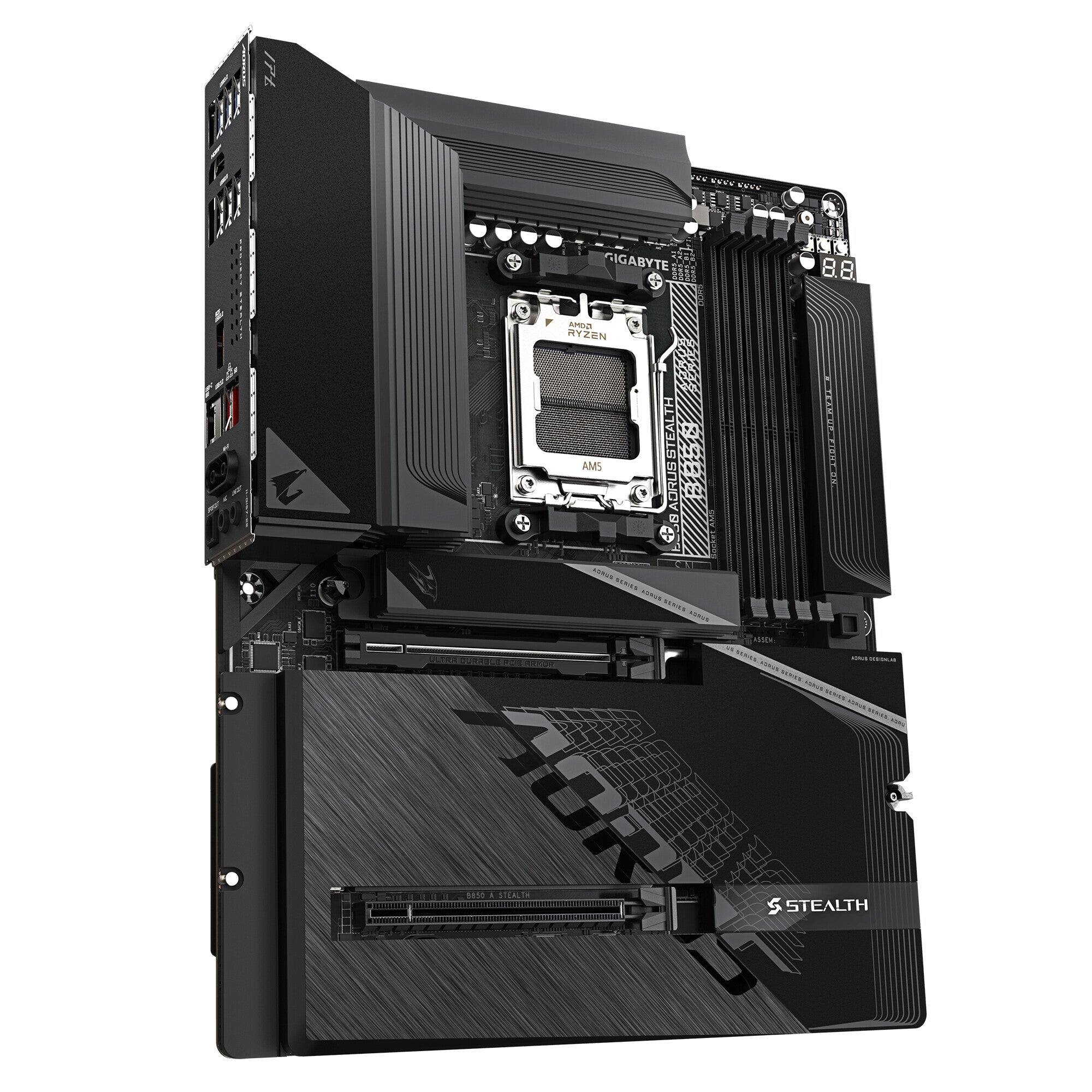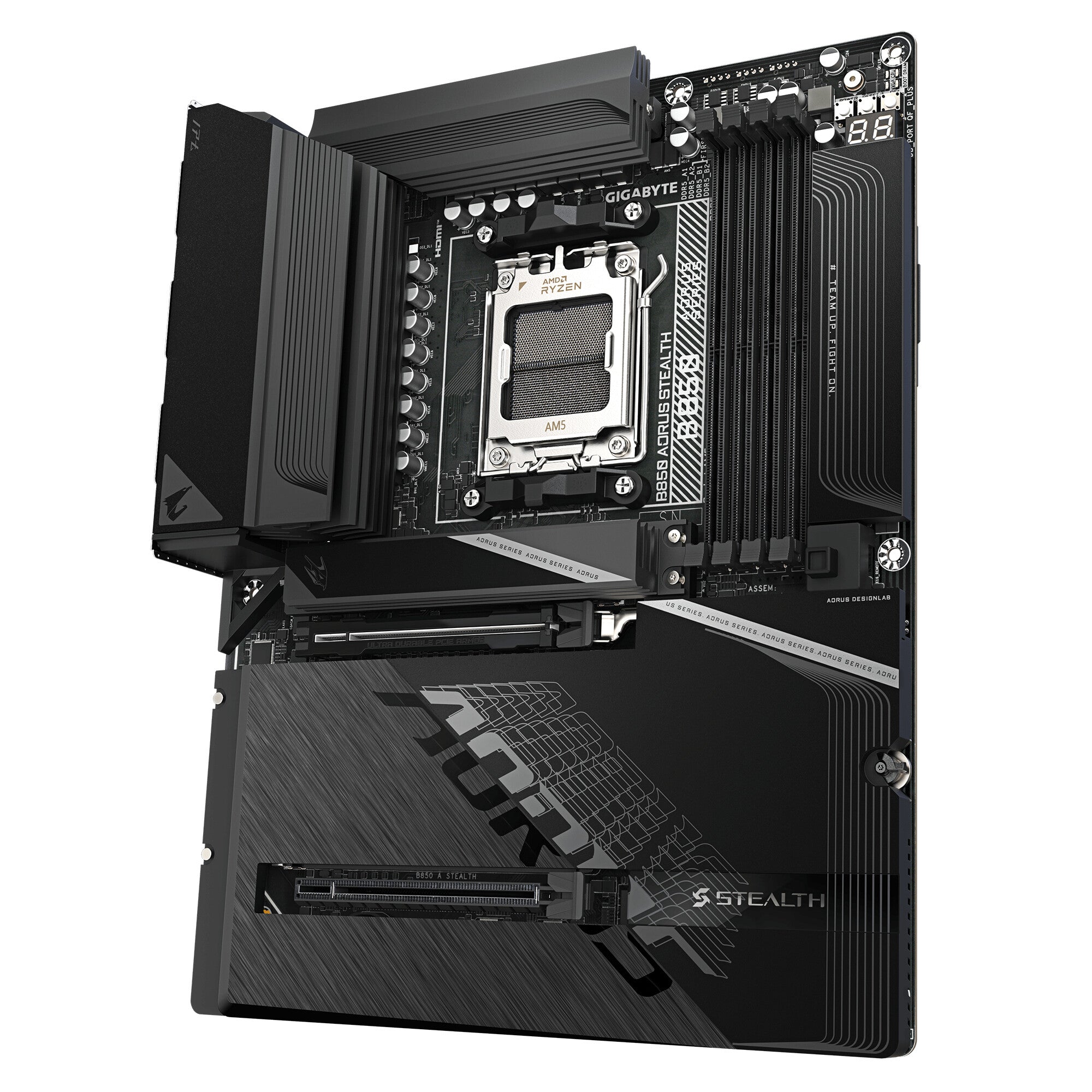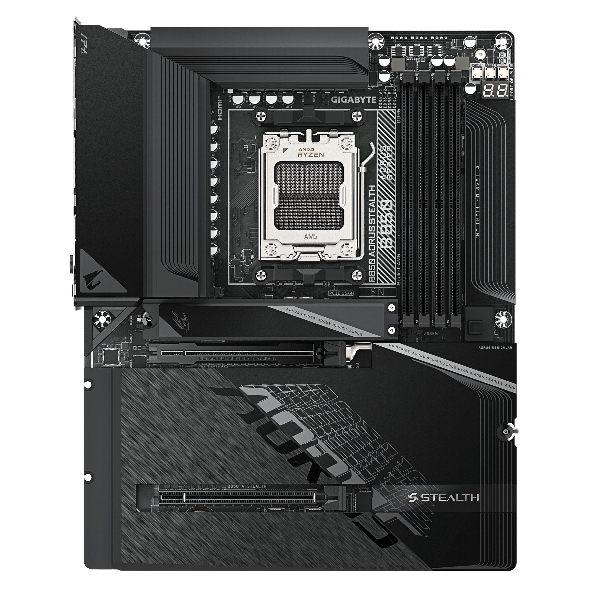 GIGABYTE B850 AORUS STEALTH Motherboard - AMD Ryzen 9000 Series CPUs, 14+2+2 Phases Digital VRM, up to 8200MHz DDR5 (OC), 2xPCIe 5.0 + 2xPCIe 4.0 M.2, WIFI 7, 5 GbE LAN, USB 3.2 Gen 2