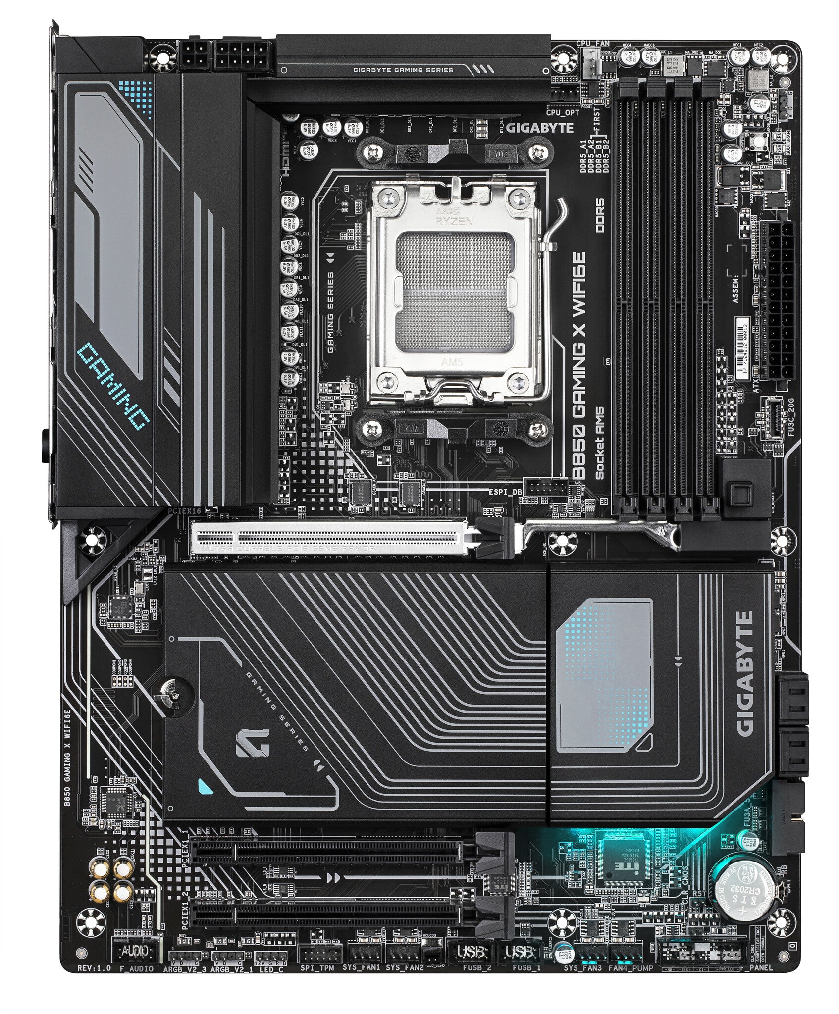 GIGABYTE B850 GAMING X WIFI6E Motherboard - AMD Ryzen 9000 Series CPUs, 12+2+2 Phases Digital VRM, up to 8200MHz DDR5 (OC), 1xPCIe 5.0 + 2xPCIe 4.0 M.2, 2.5LAN, WIFI 6E, USB 3.2 Gen 2x2