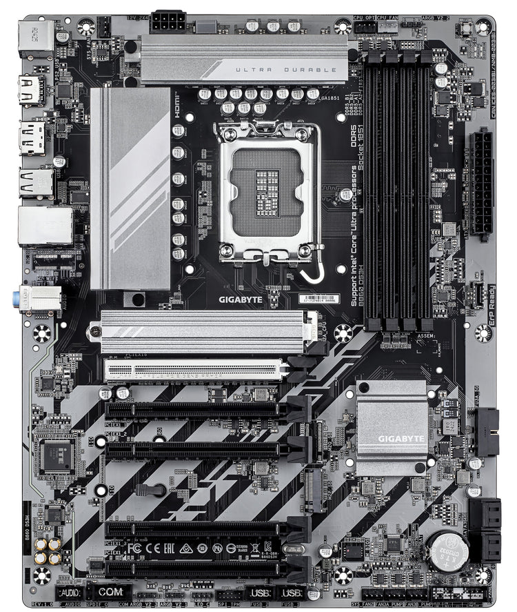 GIGABYTE B860 DS3H Motherboard - Supports Intel Core Ultra CPUs, 8+1+2+2 phases VRM, up to 9066MHz DDR5, 1xPCIe 5.0 + 1xPCIe 4.0 M.2, 2.5 GbE LAN, USB 3.2 Gen 2x2