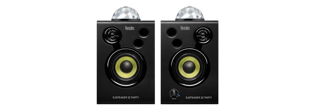 The Hercules DJSpeaker 32 Party speakers light up your parties with quality sound and a system of LED lights for a color-filled ambiance. Each speaker features a light dome with flame and spotlight effects to make your event unique. Easily controlled via the included infrared remote, the speakers let you choose between 4 different lighting modes: keep the good vibes going non-stop at your next birthday party, New Year’s Eve bash or any spur-of-the-moment get-together!