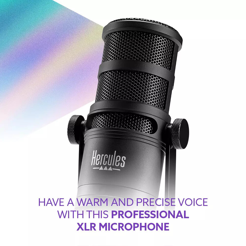 - HXD-700, the new Hercules XLR microphone: broadcast a warm and precise voice with the unidirectional dynamic capsule, obtain a low cut and mid range boost with physical toggle activation, includes a metal stand and an anti-pop for a clearer voice.