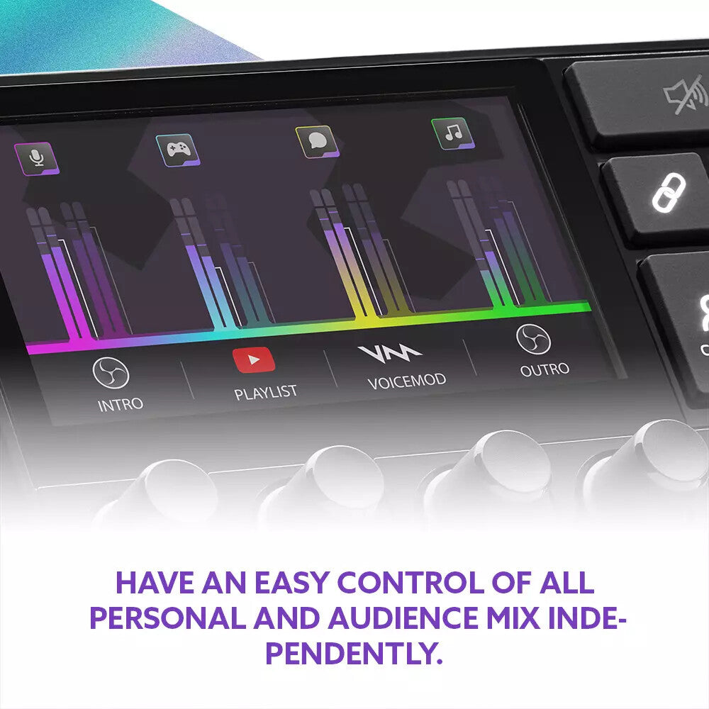 - Mixer with built-in audio, advanced audio features: advanced XLR microphone settings, Mute List, Solo, Push to Mute, included preamp for high-fidelity vocal sound
