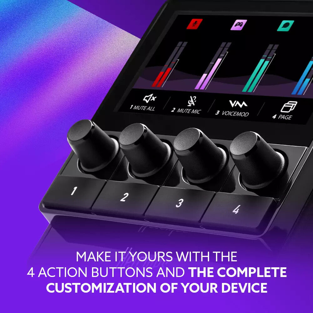 - 4 action buttons with up to 8 assignable actions (multiple mute, URL launcher, scene change, voice change etc.)