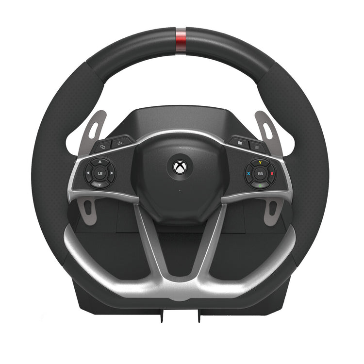 HORI brings the best in build-quality, customization options, and authentic racing simulation with the Force Feedback Racing Wheel DLX Designed for Xbox Series X|S. HORI's Tokyo design team has brought all the features and quality of a full-size racing wheel with large and stable foot pedals and solid metal paddle shifters. Powerful yet fully adjustable force feedback brings you in the race with our newly designed dual motor force feedback mechanism. The Force Feedback Racing Wheel DLX Designed for Xbox Series X|S clamps securely to your table or racing wheel stand with sturdy clamps and steel parts. Completely programmable and adjustable - fine tune other settings such as dead zone, pedal sensitivity, rotation angle, and more. Officially Licensed by Microsoft.