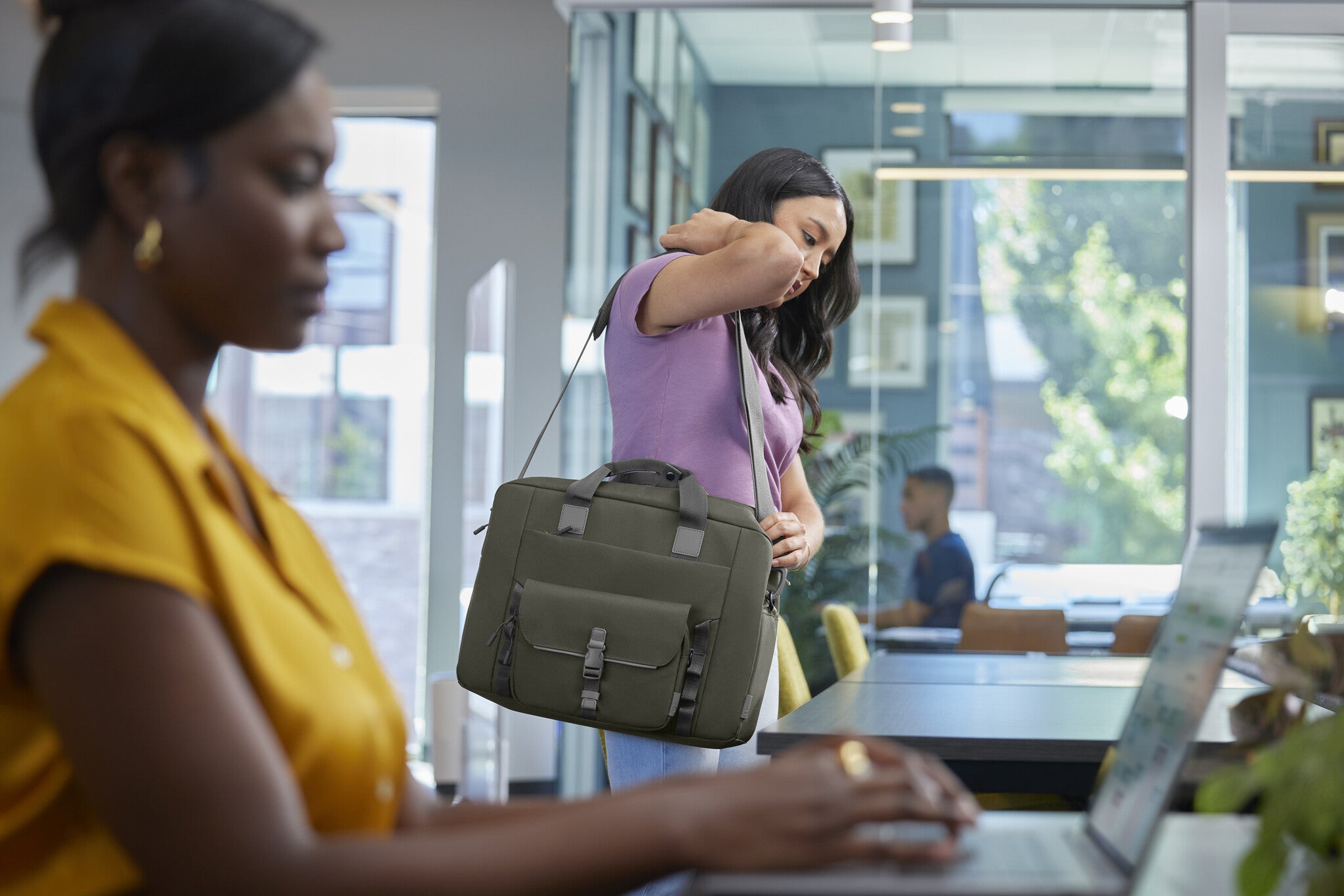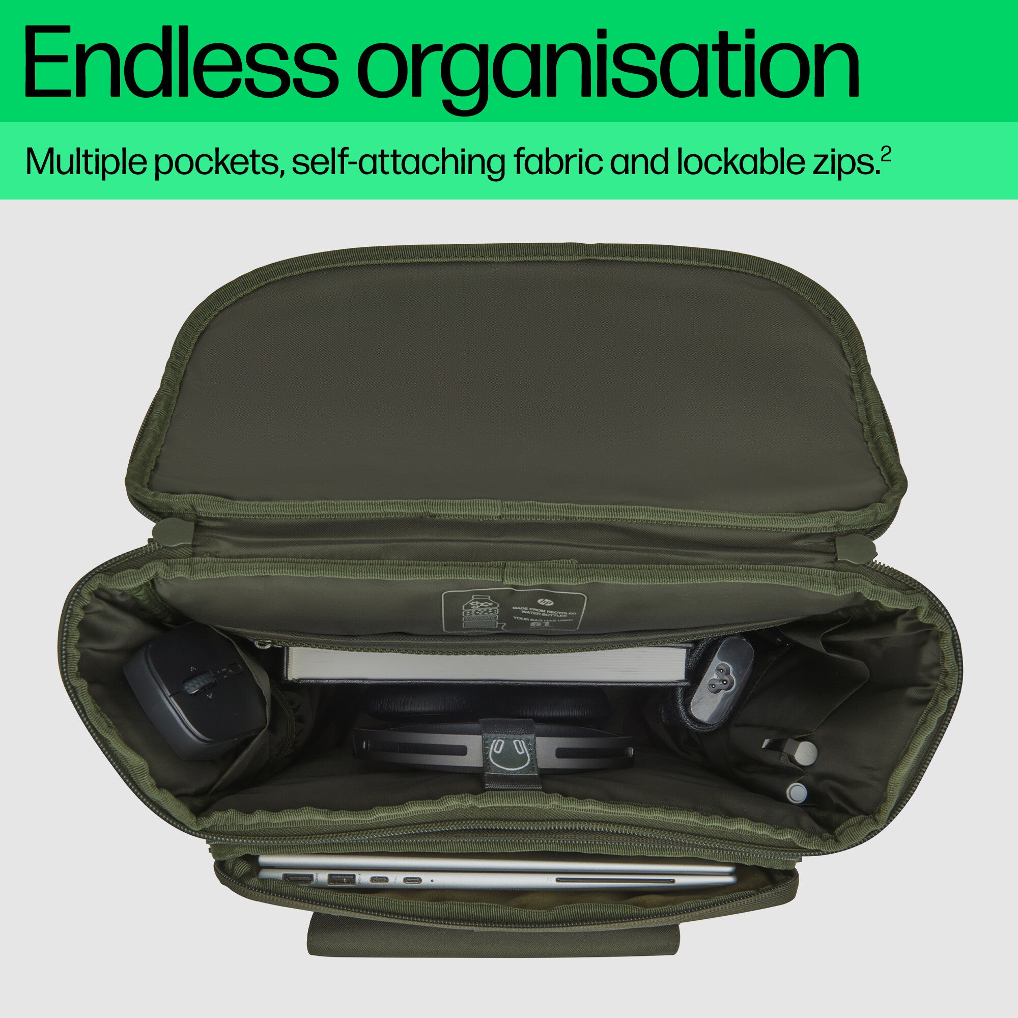 - Seize every day with a laptop backpack that keeps you organized on the go. The 27L total capacity includes a broad range of internal and external pockets across backpack, sleeve, and pouch. The self-attaching fabric holds your stuff tight, while the lockable zippers, with cable passthroughs, keep it safe[2].