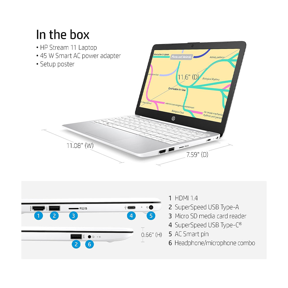 HP Stream Laptop 11.6", 4GB RAM, 64GB eMMC - White (Grade A1 - Like New)