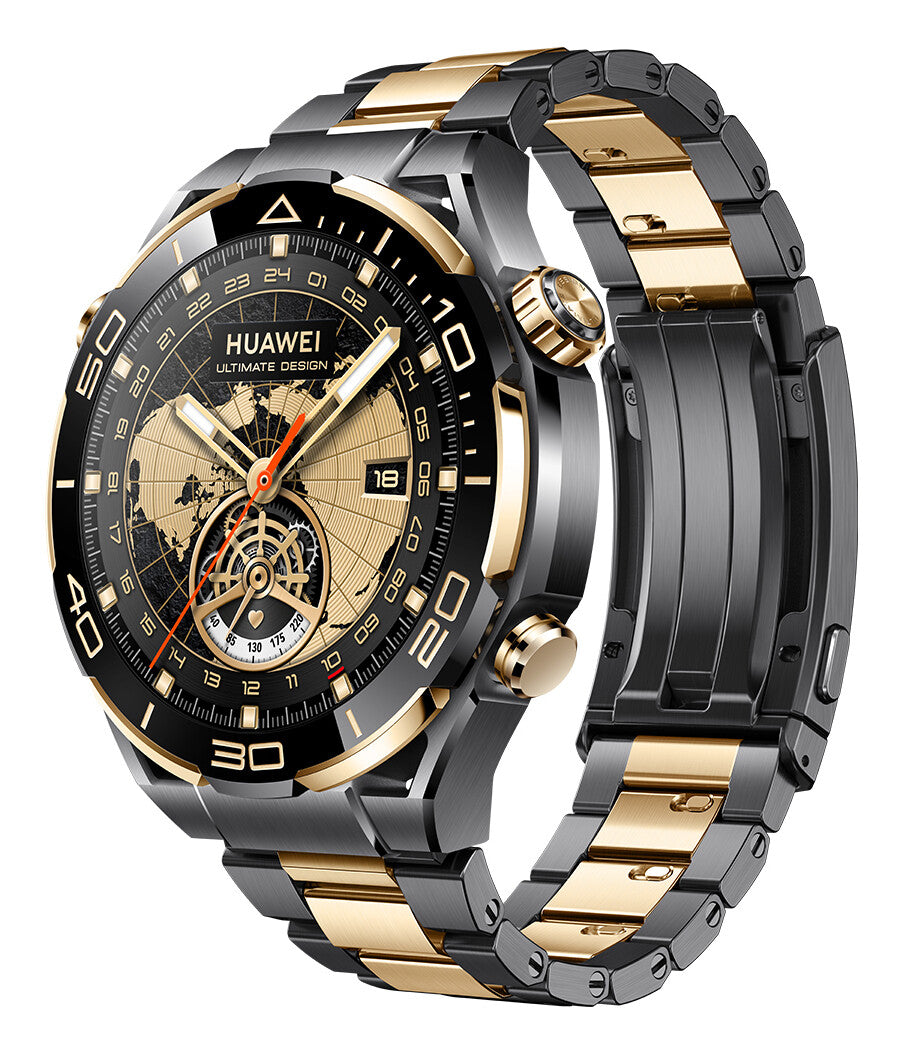 HUAWEI WATCH ULTIMATE DESIGN exudes luxury in every detail. Six segments of 18K gold are inlaid at the edge of the nanocrystal ceramic bezel.