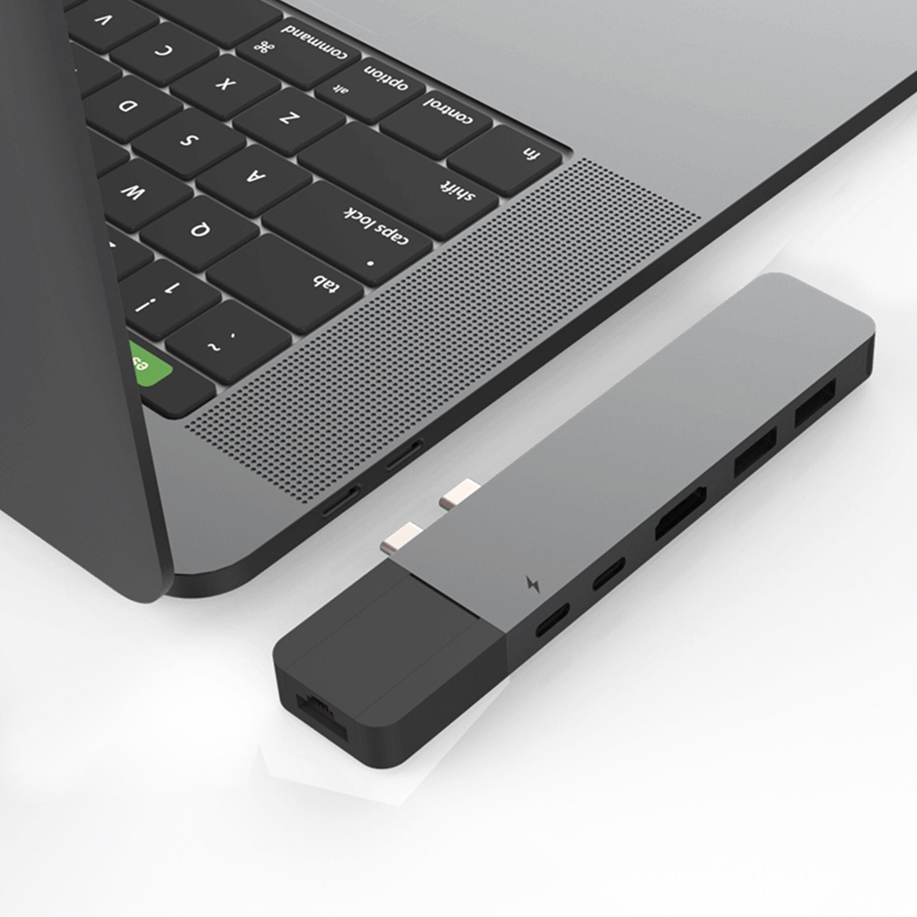 HyperDrive is the only USB hub for MacBook Pro and MacBook Air with two USB-C ports that support power delivery and data (40Gbps/100W + 5Gbps/60W).