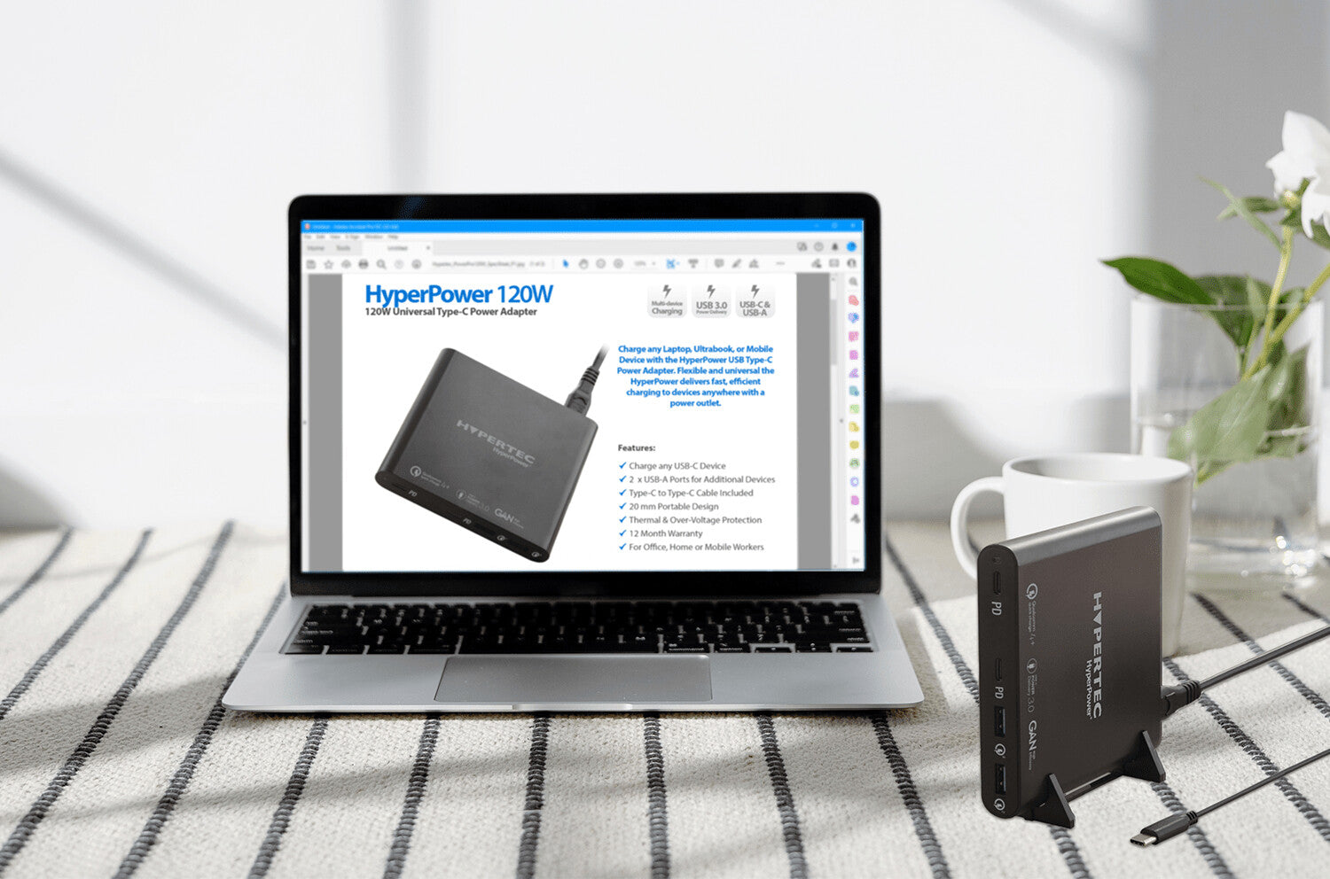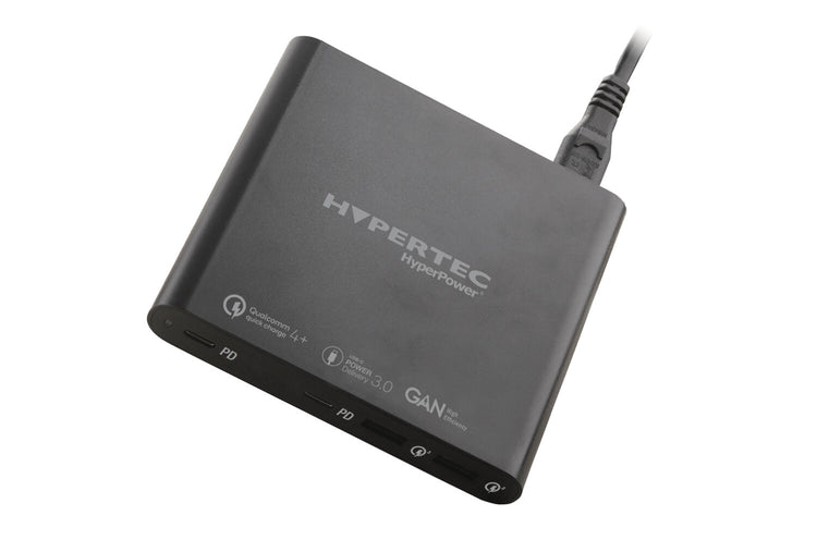 Designed to support a range of electronic devices, the HyperPower 120W includes two USB-C ports and two USB-A ports. Offering Type-C Power Delivery using PD3.0 and Qualcomm Quick Charge4+ on USB-A.