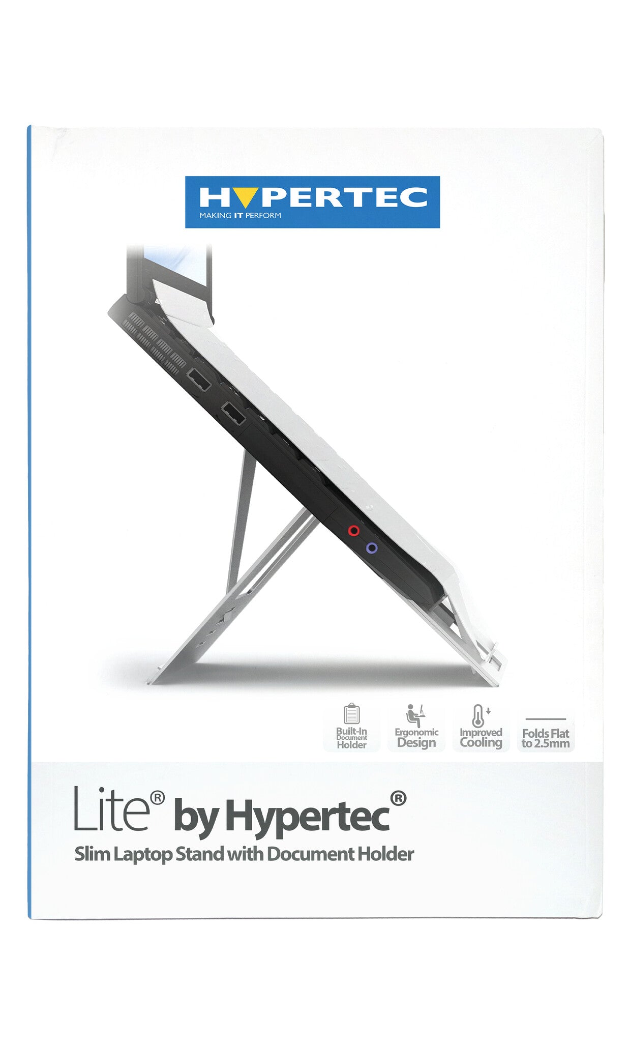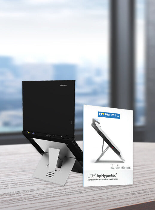 As well as providing an ergonomic viewing position for your device, the Lite® Laptop Stand can also be used as a fully functioning document holder. Allowing books and documents to be positioned and secured in an ergonomic reading position. In the office, or out and about, the 4 available height adjustments make the Lite® by Hypertec Laptop Stand a great mobile ergonomic work place.
