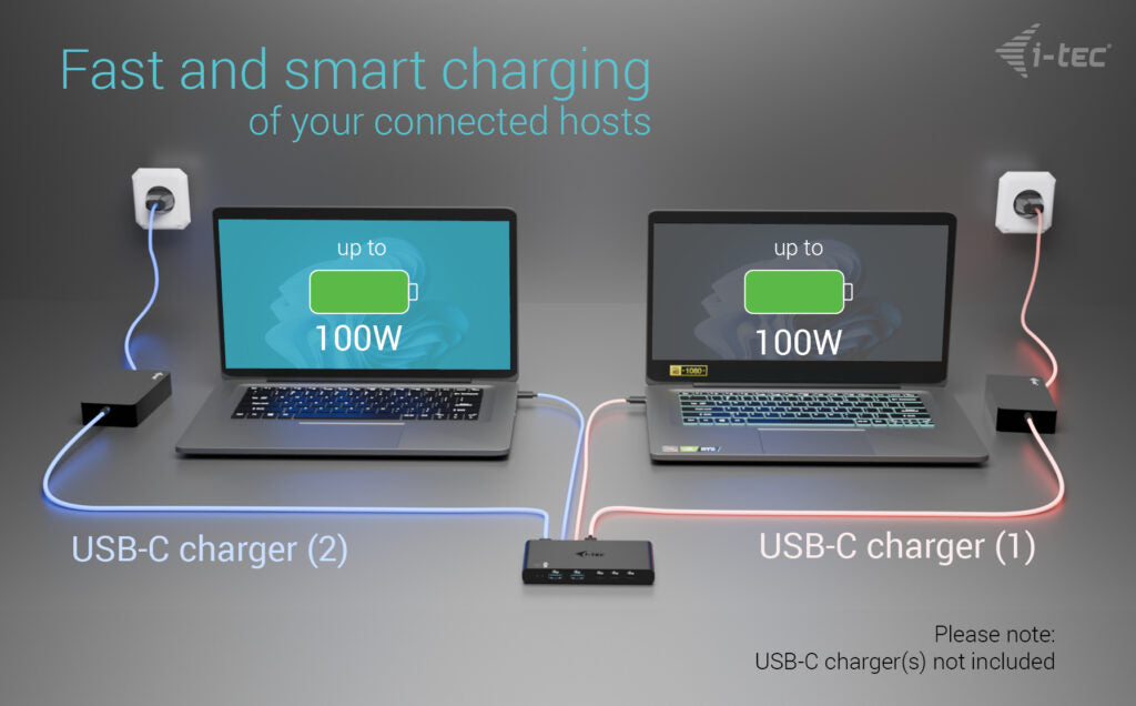 - Dual Power Delivery—charges both connected devices up to 2× 100 W*