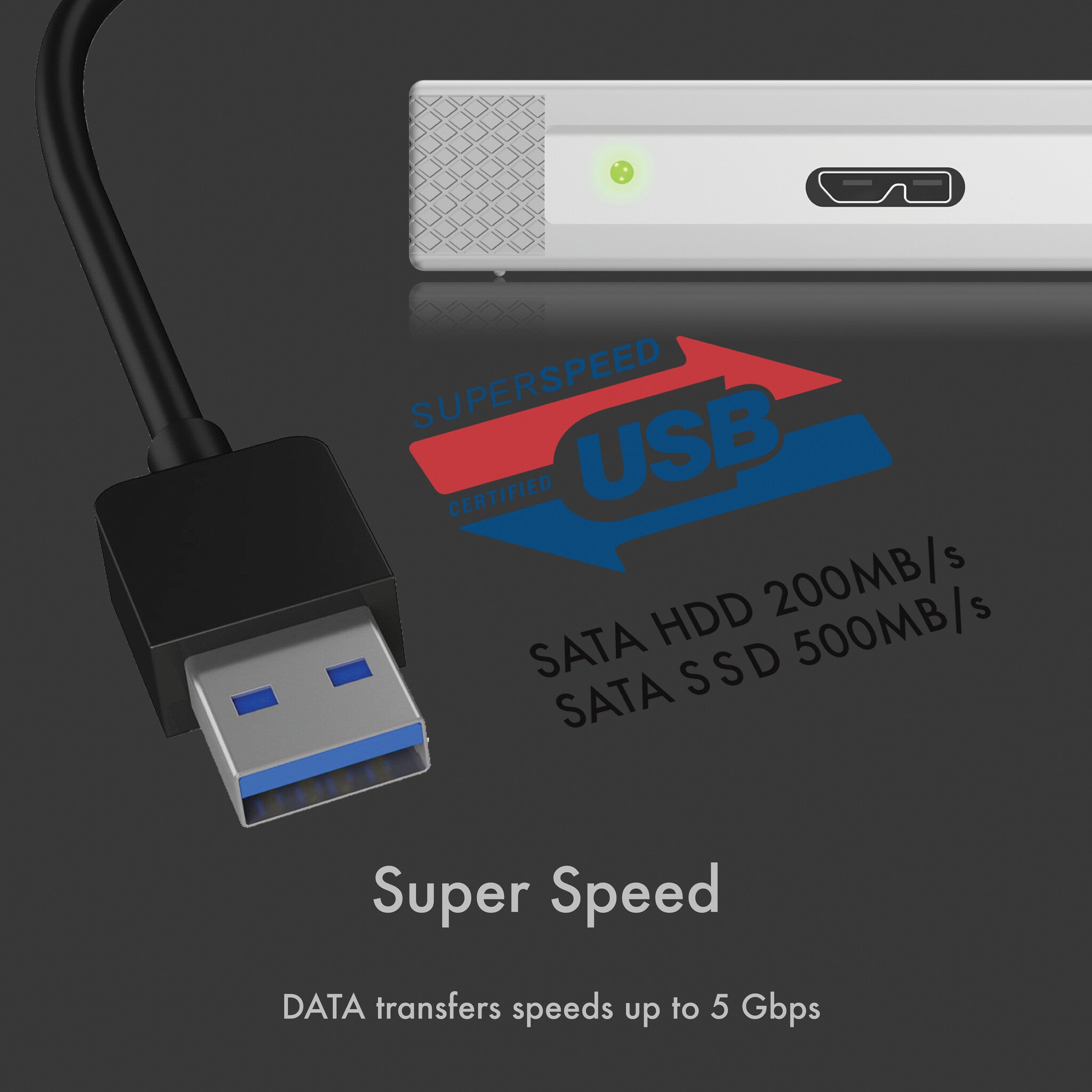 - USB 3.0 micro-B on the enclosure and USB 3.0 Type-A to the PC
