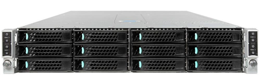 2U rack chassis supporting up to four hot-pluggable compute modules Intel(r) Compute Module HNS2600BP product family, up to 12 hot-swap drives, and two 2130W common redundant power supplies