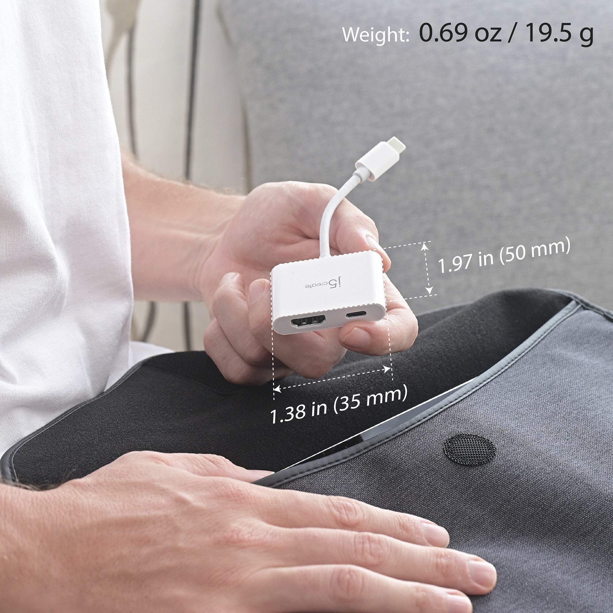 Add extra functionality to your smartphone or laptop with the JCA152 USB-C® to 4K HDMI™ Adapter with Power Delivery. This device allows you to connect to a monitor, TV, or projector with the HDMI™ port and includes a USB-C® port that offers charging up to 100W when a USB-C® power adapter is connected. The HDMI port supports 4K UHD resolution for clear picture quality and DisplayPort™ Alternate Mode for plug and play functionality. Equipped with a USB-C® Power Delivery 3.0 charging port, it offers charging up to 100W when connected to a USB-C® power adapter.