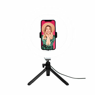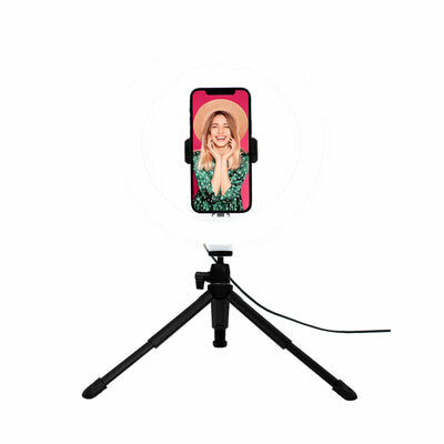 The 360° Rotatable Ball Joint allows the ring light to be easily tilted to get the optimum angle for your photo / video. The light itself is 10" in diameter, ample light for most uses. Featuring extendable legs, long-life LEDs, USB powered and equipped with a smart phone holder (will fit multiple sized devices) – you have everything you need to create. Designed for the casual and dedicated Social Media users, whether its for vlogging, live streams, product photography or that on-point selfie, the Juice Social Ring Light has all angles covered.