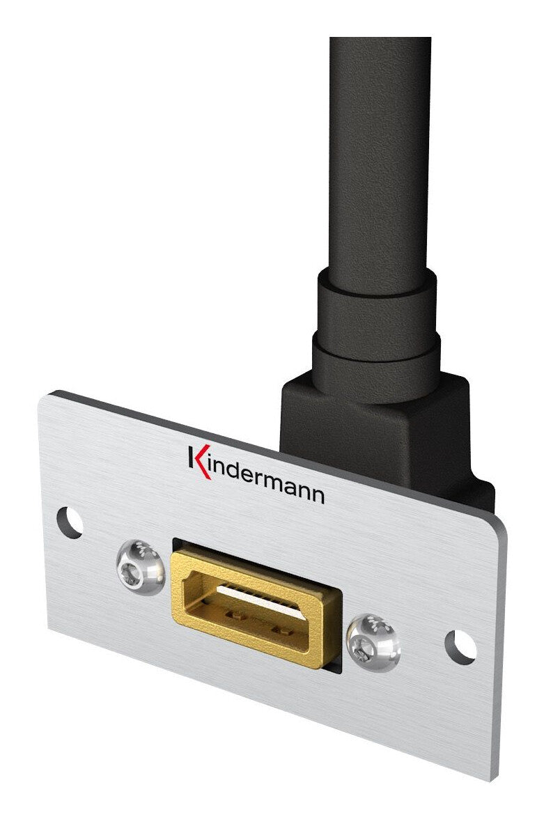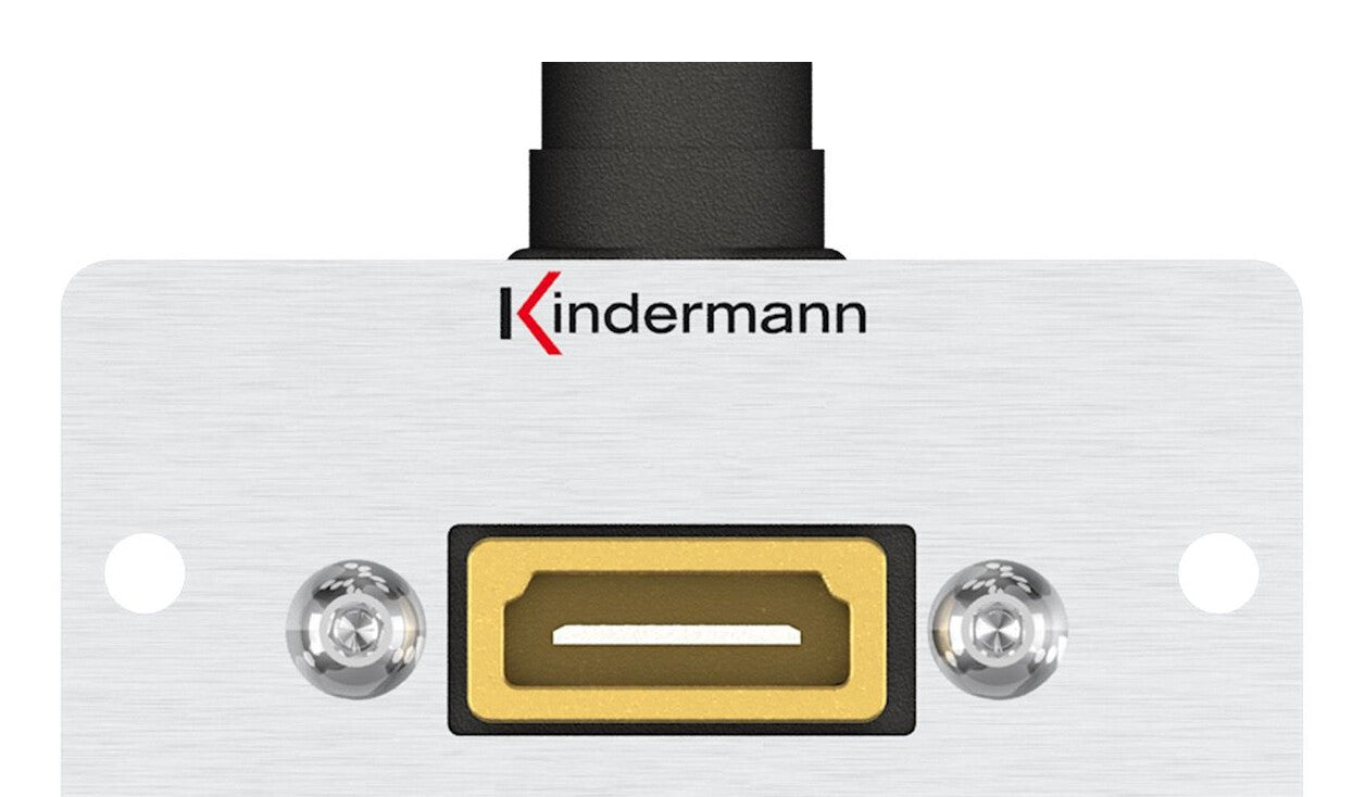 Adapter plate HDMI 90° to 19-Pin, female/19-Pin-male, cable and plug connection, half size plate, anodized aluminium.