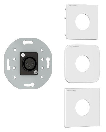 - Adapter plate with plastic cover in the sizes 50 x 50, 54 x 54, 55 x 55mm included in delivery, Audio XLR socket (f), soldering connection, full size plate, RAL 9010 white.