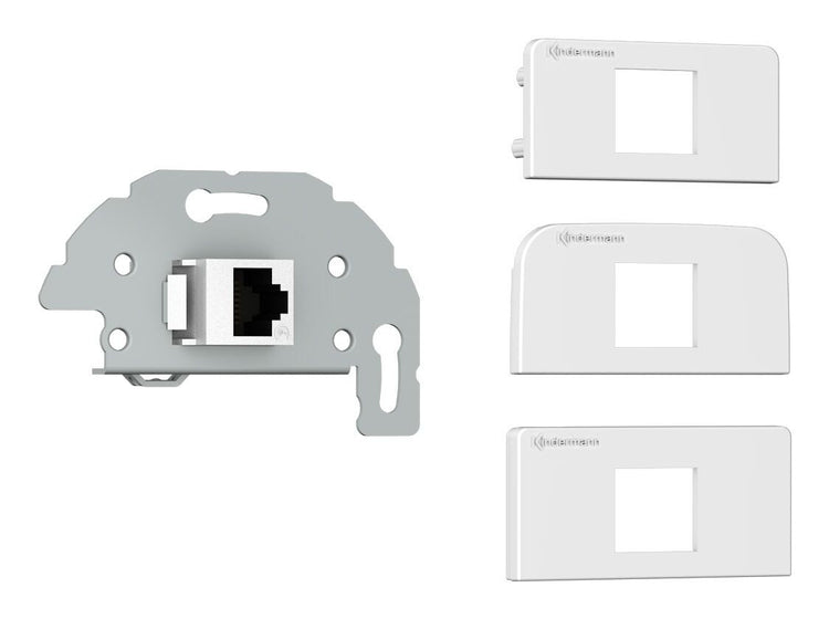 Cat-6A (RJ45), gender changer connection (BTR), half size plate, RAL 9010 white.
