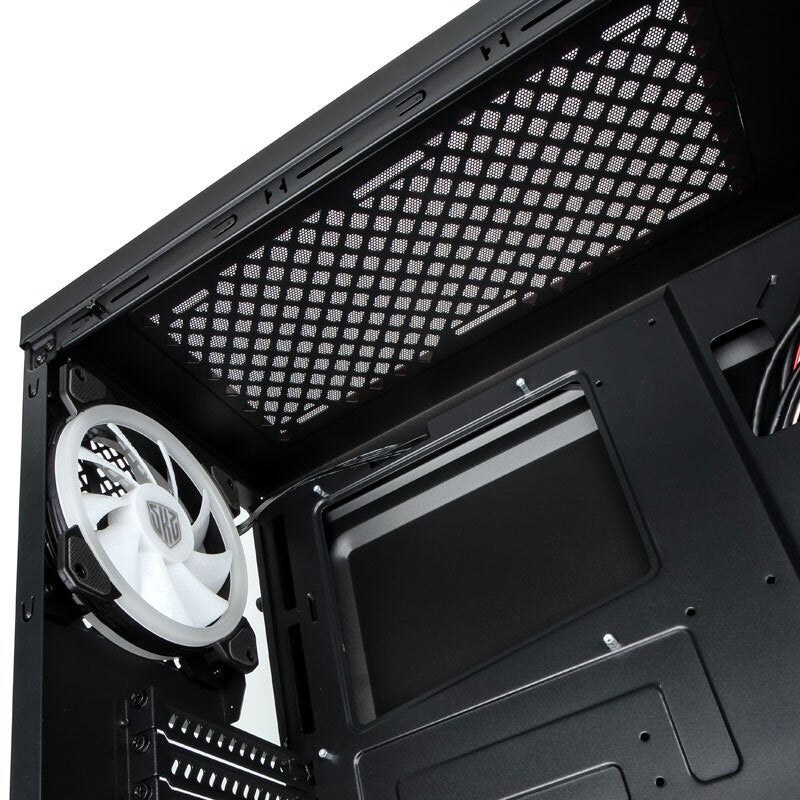 For instance, there are many possibilities when it comes to cooling. Air cooling being served by four pre-installed RGB Ring Fans (three in the front and one in the back). However you can also install two additional 120mm fans on the case's roof and a further two 120mm fans in the base.