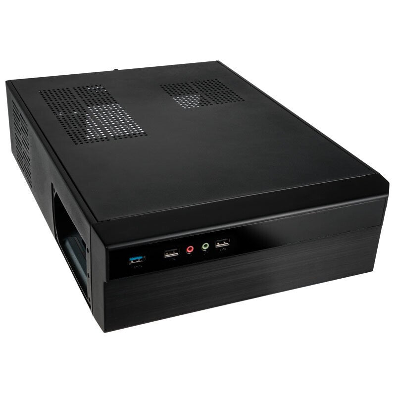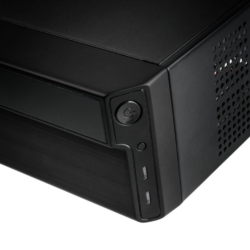 The case supports Micro-ATX- and Mini-ITX form factor motherboards. As for graphics cards, 9.5cm of space is available, although the case is ideally suited for use with CPUs that include and integrated GPU. If you do require the extra gaming horsepower however, a low-profile GPU with a max length of approx. 150mm can be installed.