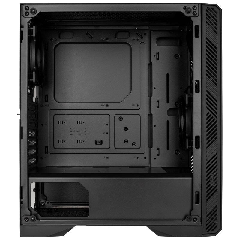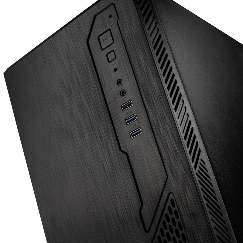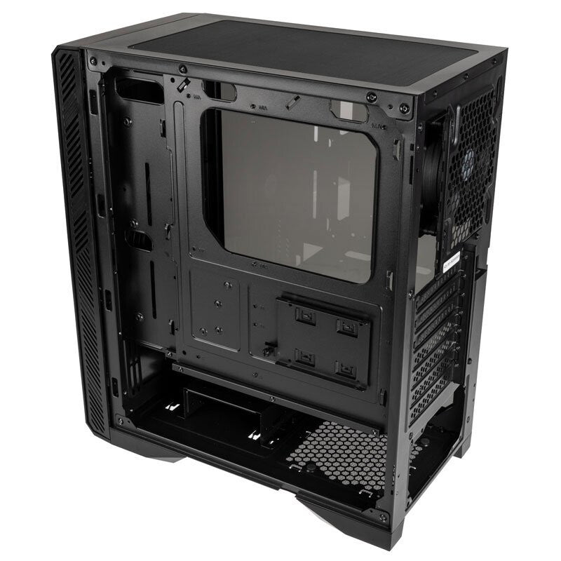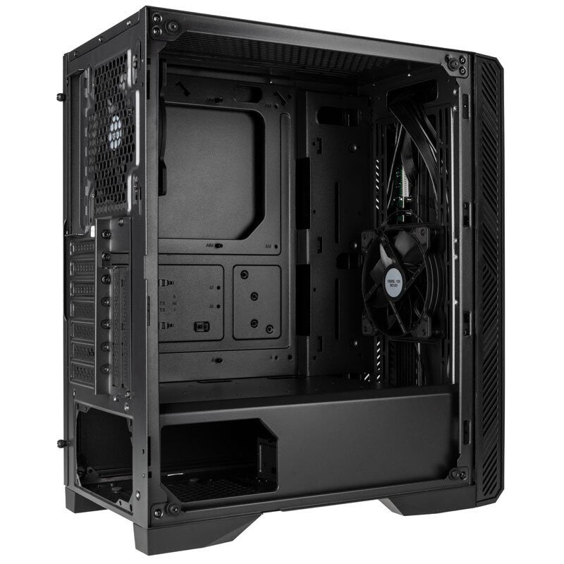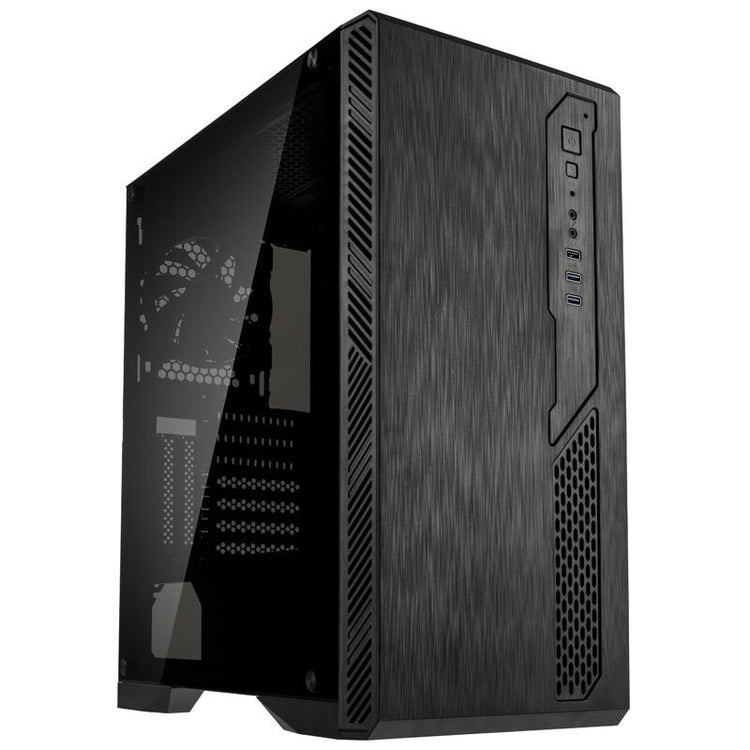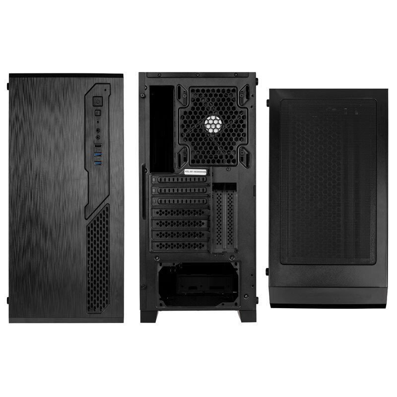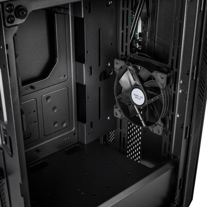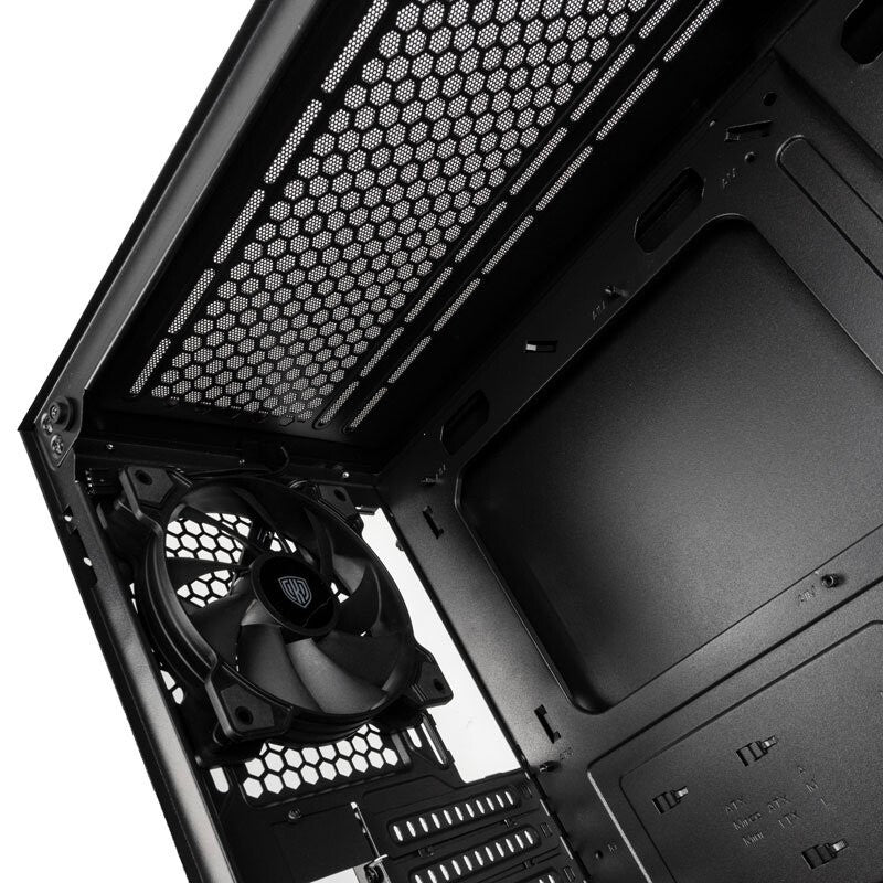 • Front vented aluminium effect panel with 2 x pre-installed 12cm PWM fans (front & rear)