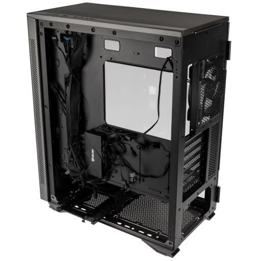 To power your gaming PC, the Stronghold Prism accommodates a power supply up to 190 mm long, held within a vented PSU shroud. Next to this compartment is the drive bay, which can host two 2.5” SSDs and either two 3.5” or 2.5” HDDs. With this flexibility, you can install a comprehensive storage solution that strikes the perfect balance between capacity and speed.