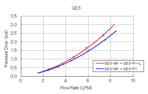After pulling the ring on the female QDC side, the quick-disconnect fittings will separate. Liquid on both sides will be automatically obstructed with approximately 0.2mL freed. Fittings are nickel-plated brass. Maximum operating pressure is 2kgf/cm2 (28.5 psi) @ 25°C. Maximum operating temperature is 100°C (212°F).