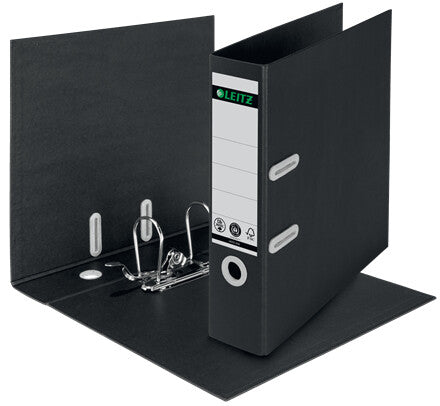 Eye-catching, premium quality Lever Arch File made from recycled materials which can be disassembled for complete recycling. 80mm wide and suitable for A4. 100% recyclable and with FSC & Blue Angel environmental certification. This robust LAF perfectly complements other products from the Leitz Recycle range and is made to last. Modern and contemporary green stationery that will look great at home and in the office. With the eco friendly Recycle range from Leitz you can both improve your office environment – and the environment of our planet.