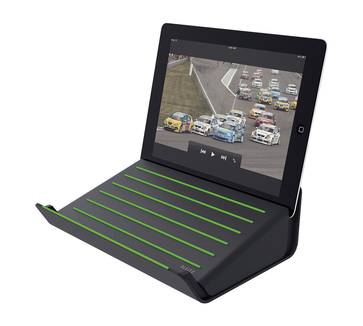 - Holds the tablet in portrait or landscape position