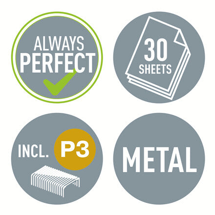 - To use with Leitz Power Performance staples – always sharp edges due to ongoing quality checks – for perfect stapling